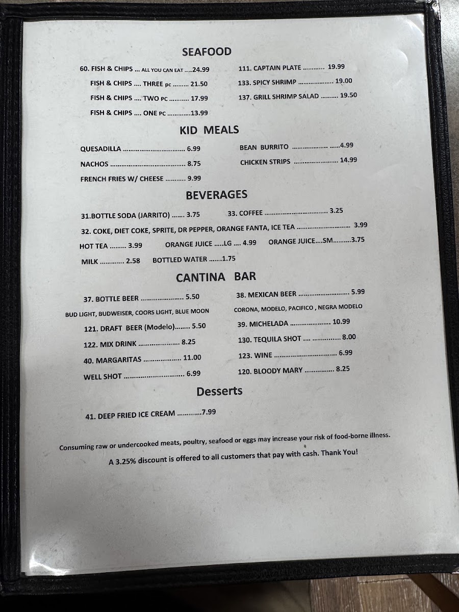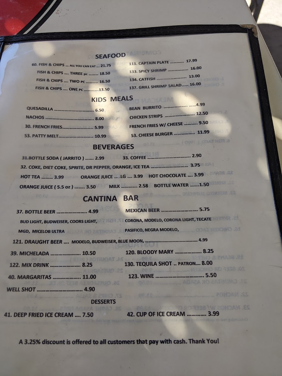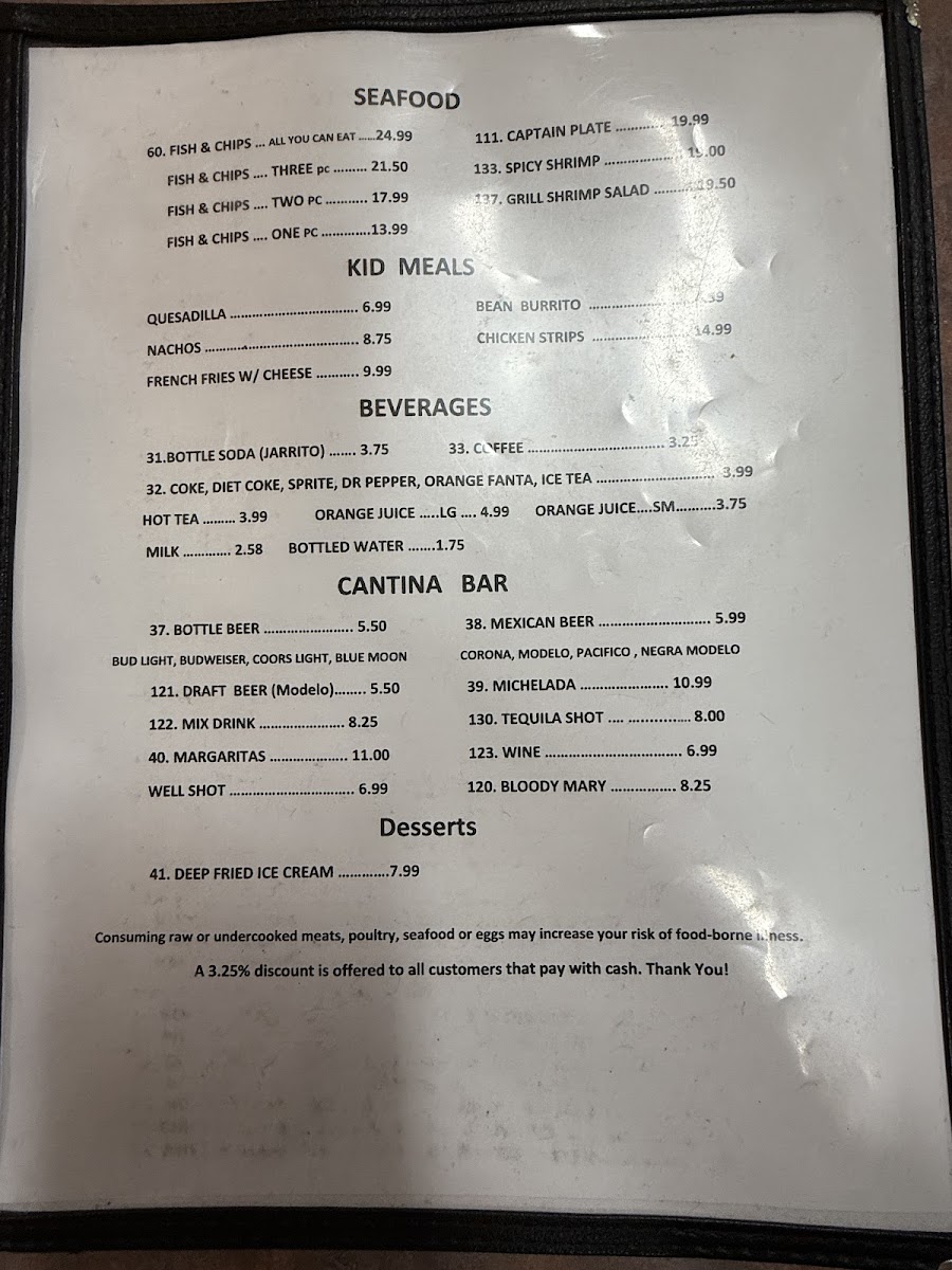 The menu comfortably suits any time of day, with breakfast offerings like eggs and classic egg combos alongside the heartier Mexican plates. On Fridays, the specialty fish and chips dish adds a comforting twist that pairs well with the friendly, relaxed atmosphere. Whether you’re stopping in for a quick bite or settling down for a full meal, the food complements the casual setting and attentive service, making each visit feel easy and welcoming.
