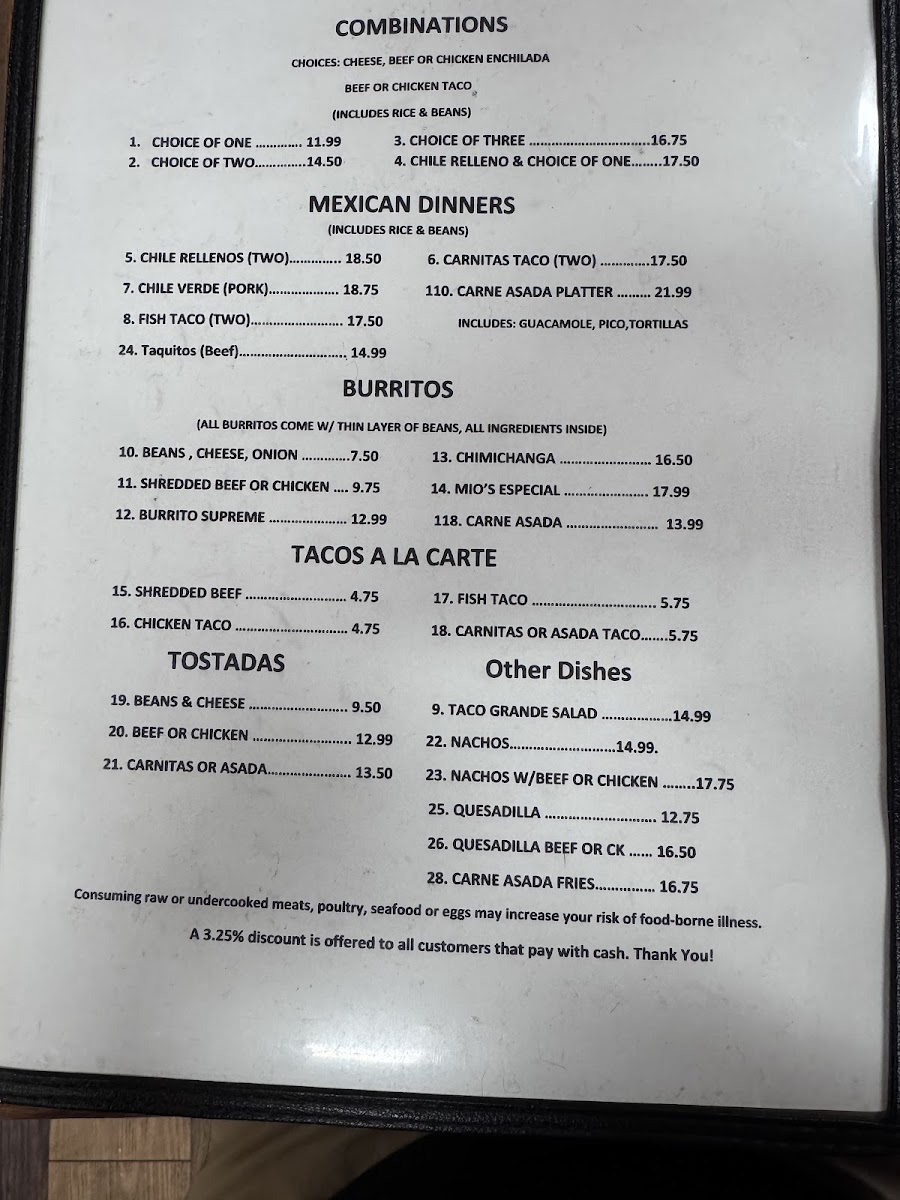 The menu at Taco Mio offers a welcoming blend of classic Mexican and Latin American dishes, presented in a straightforward, comforting style. It’s the kind of menu that invites both casual lunches and relaxed dinners, with options that feel familiar yet satisfying.